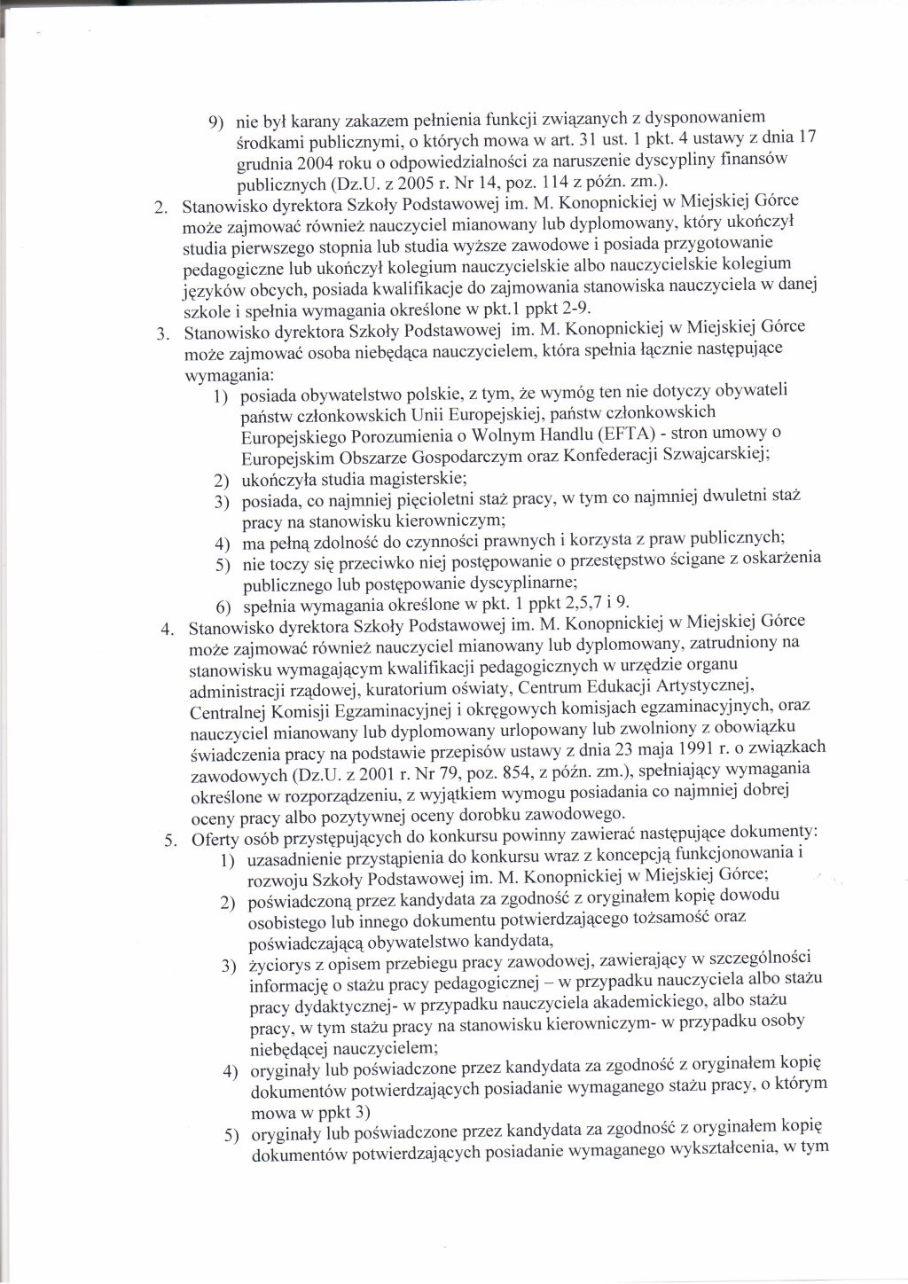 Ogłoszenie konkursu na stanowisko dyrektora Szkoły Podstawowej im. M. Konopnickiej w Miejskiej Górce