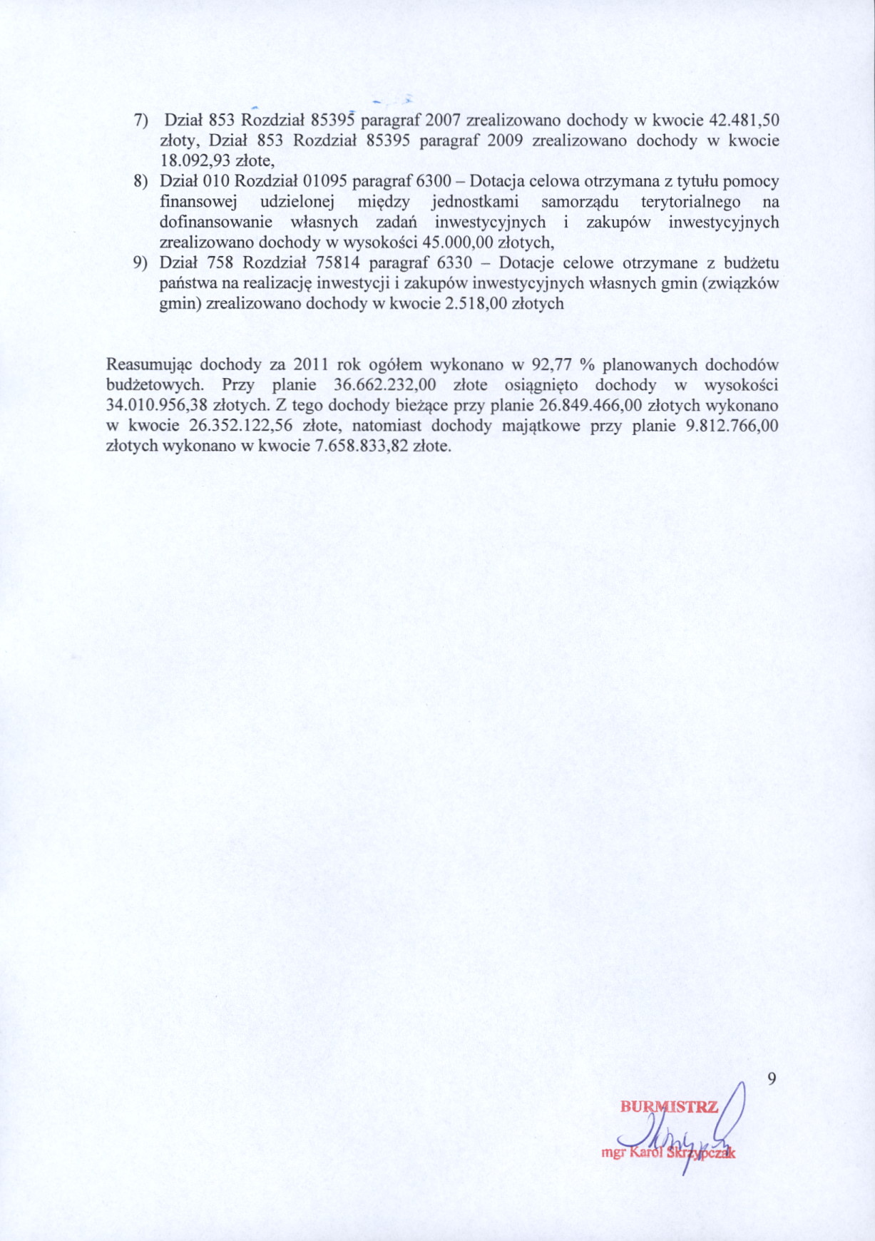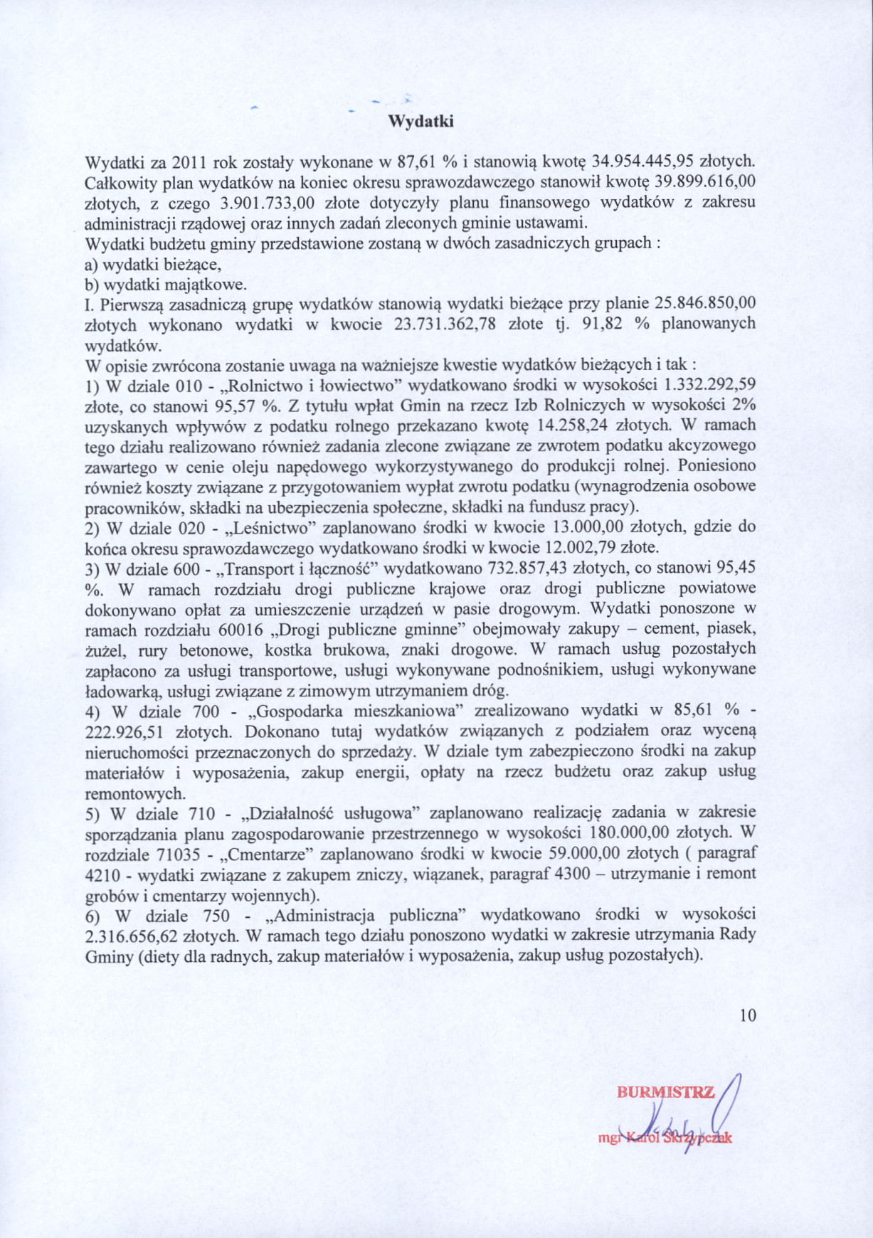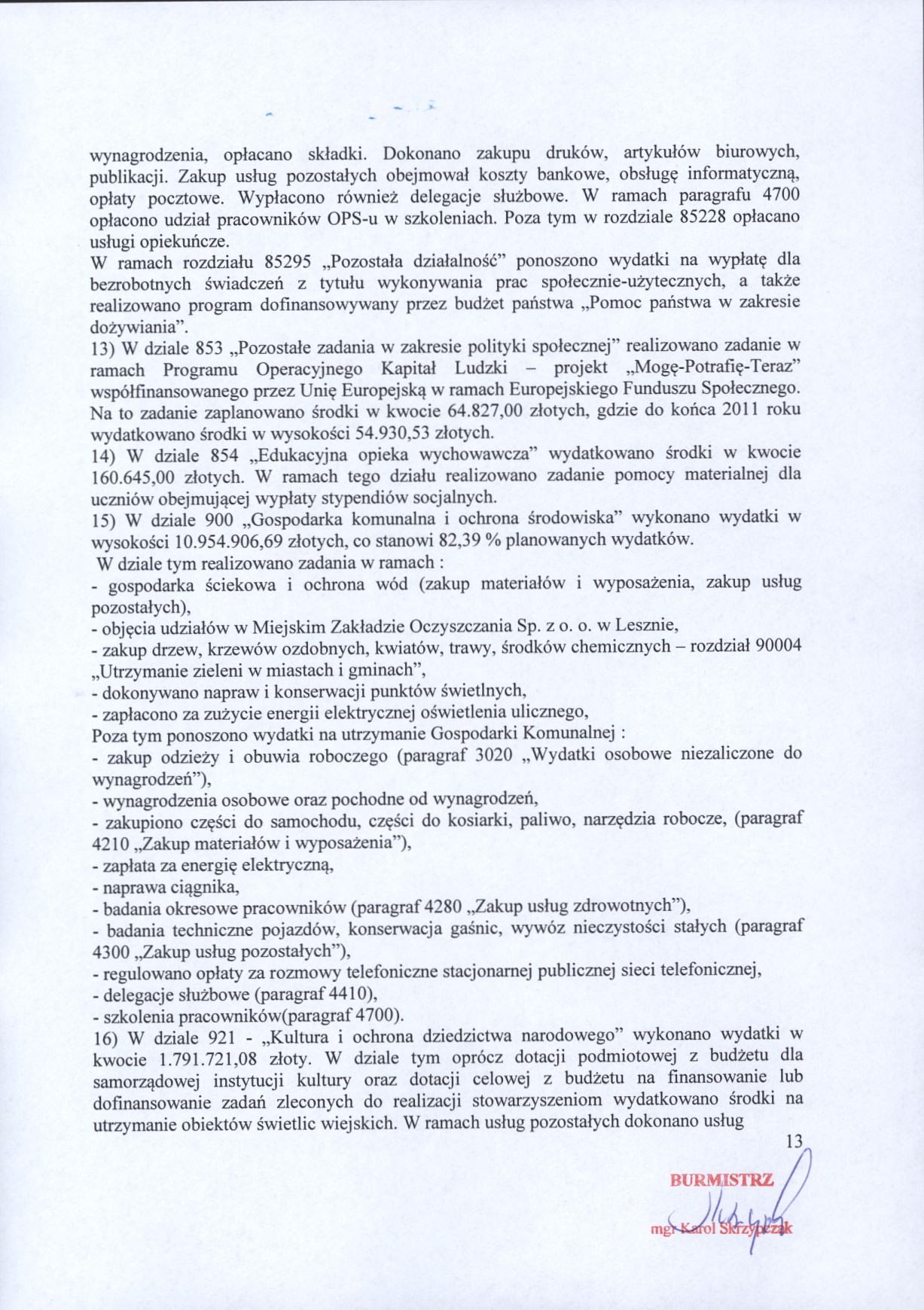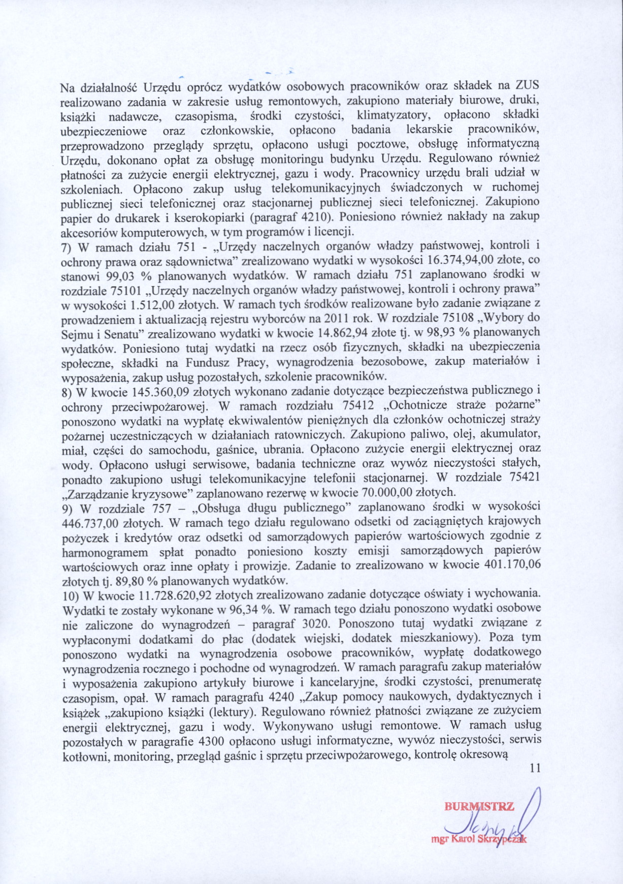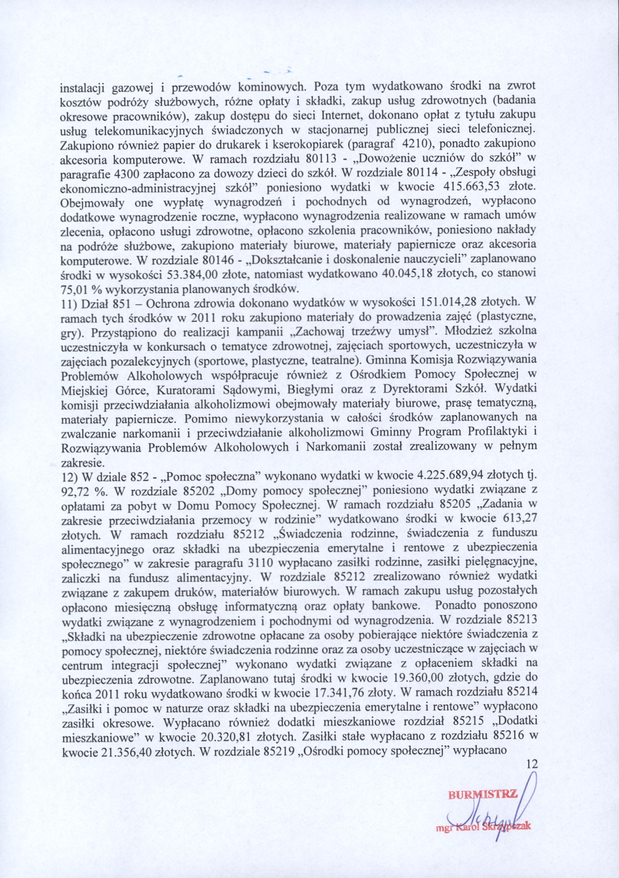 Sprawozdanie roczne z wykonania budżetu Gminy Miejska Górka za 2011 rok