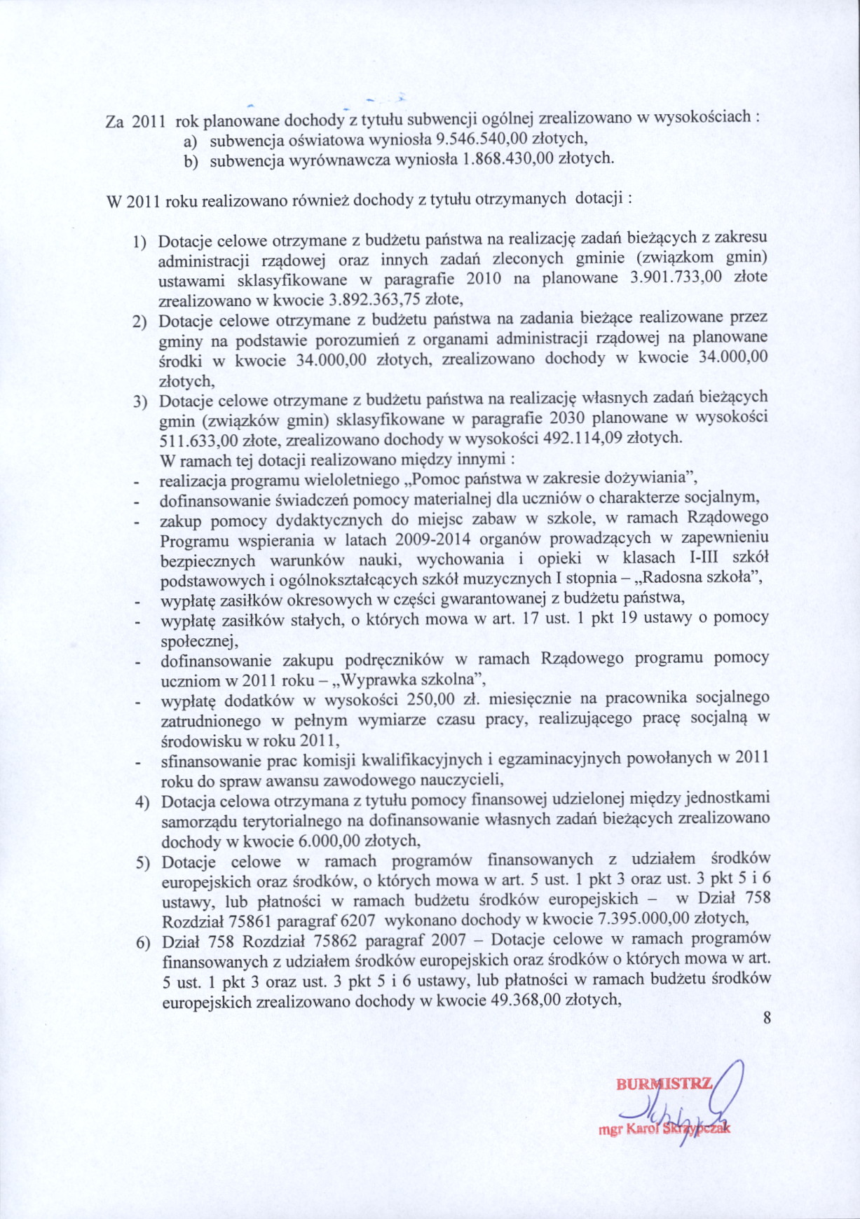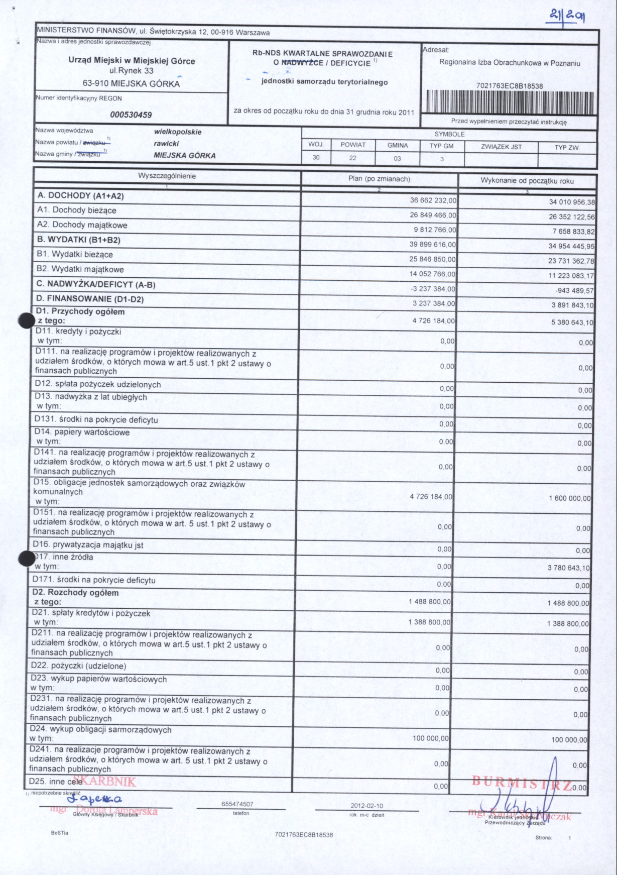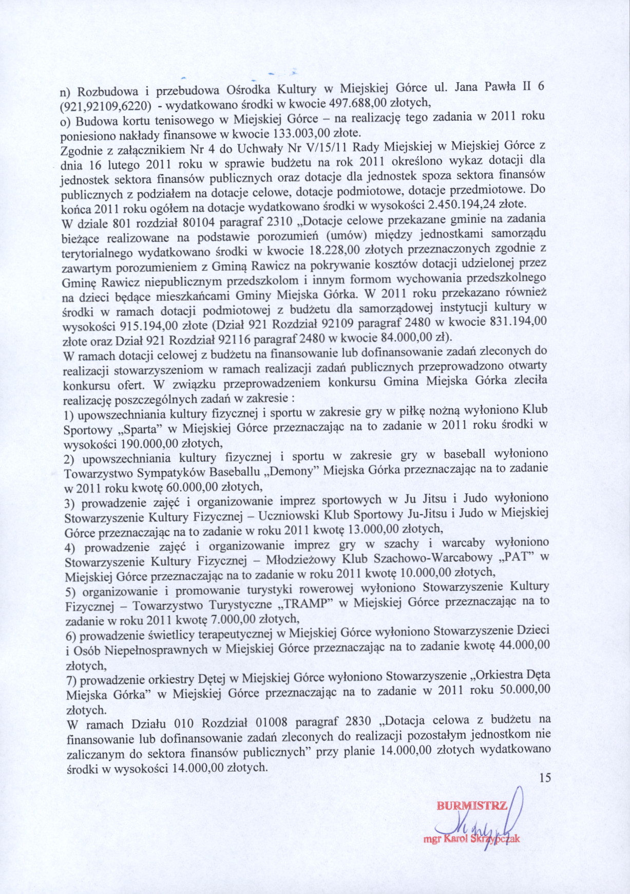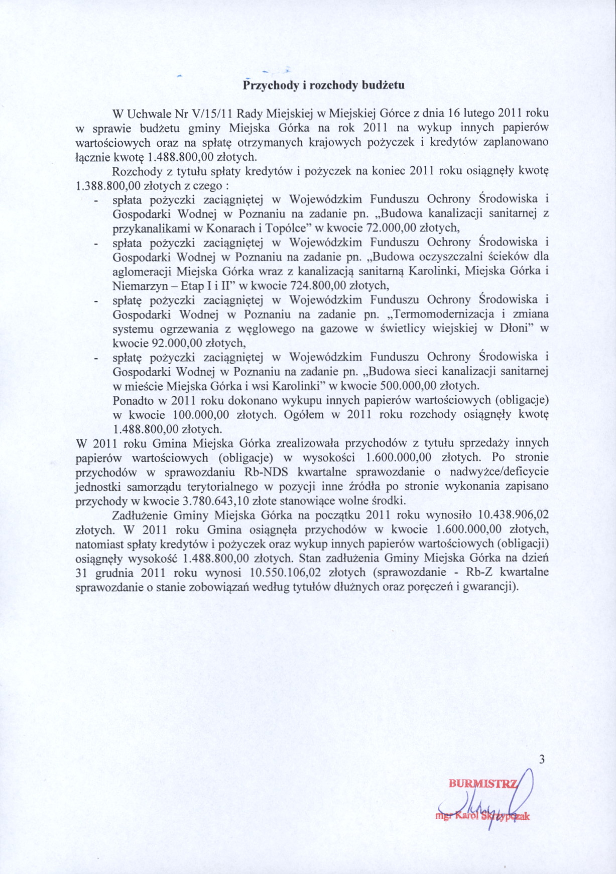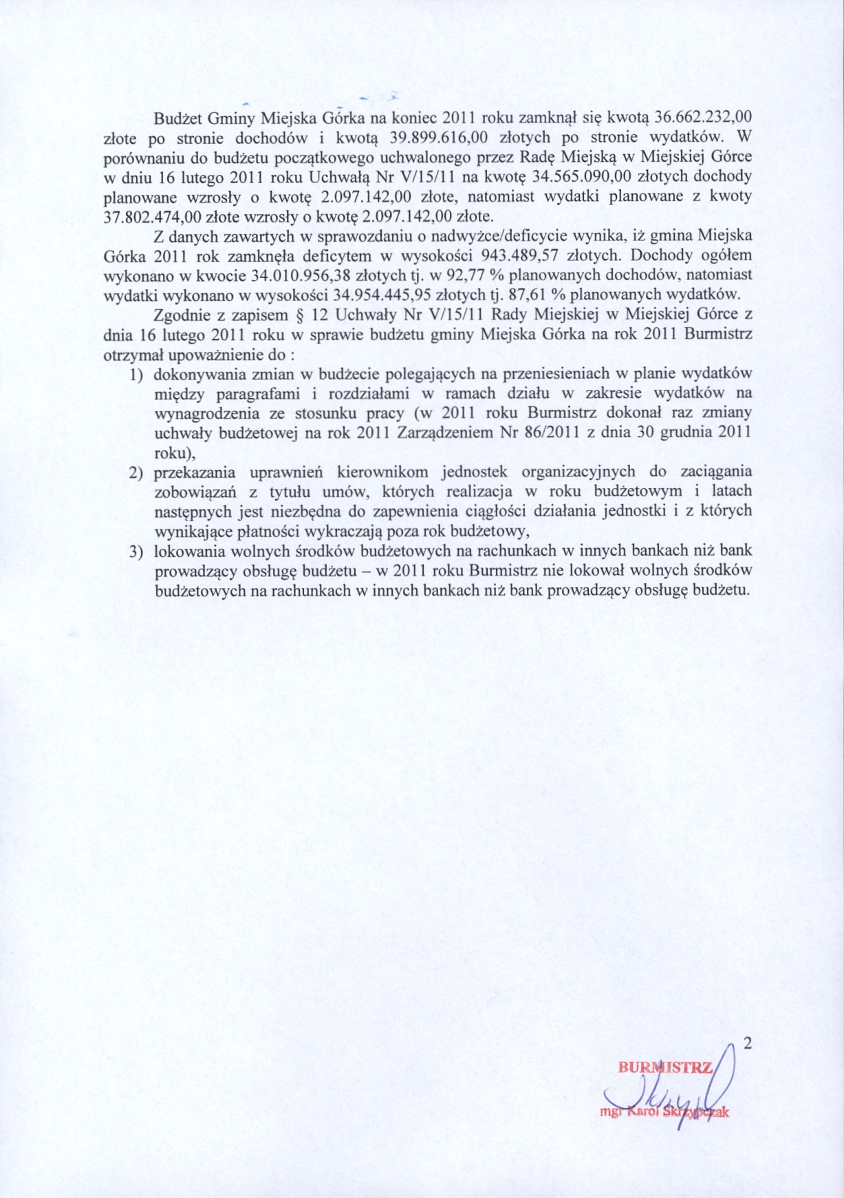 Sprawozdanie roczne z wykonania budżetu Gminy Miejska Górka za 2011 rok