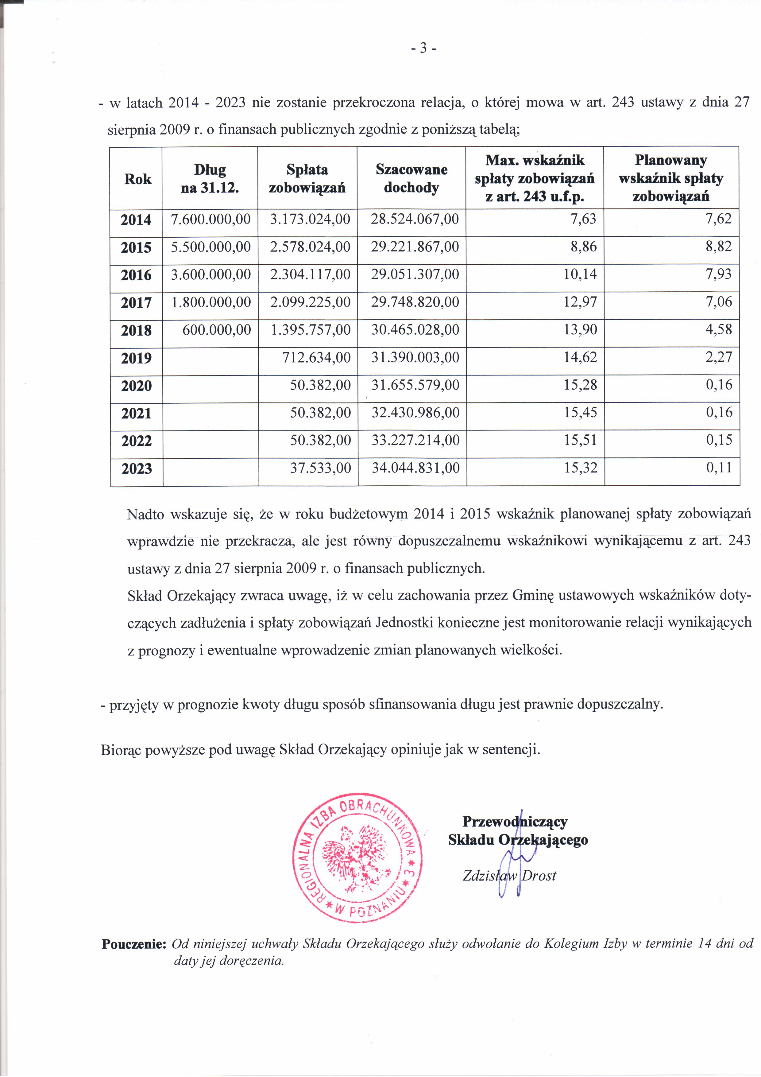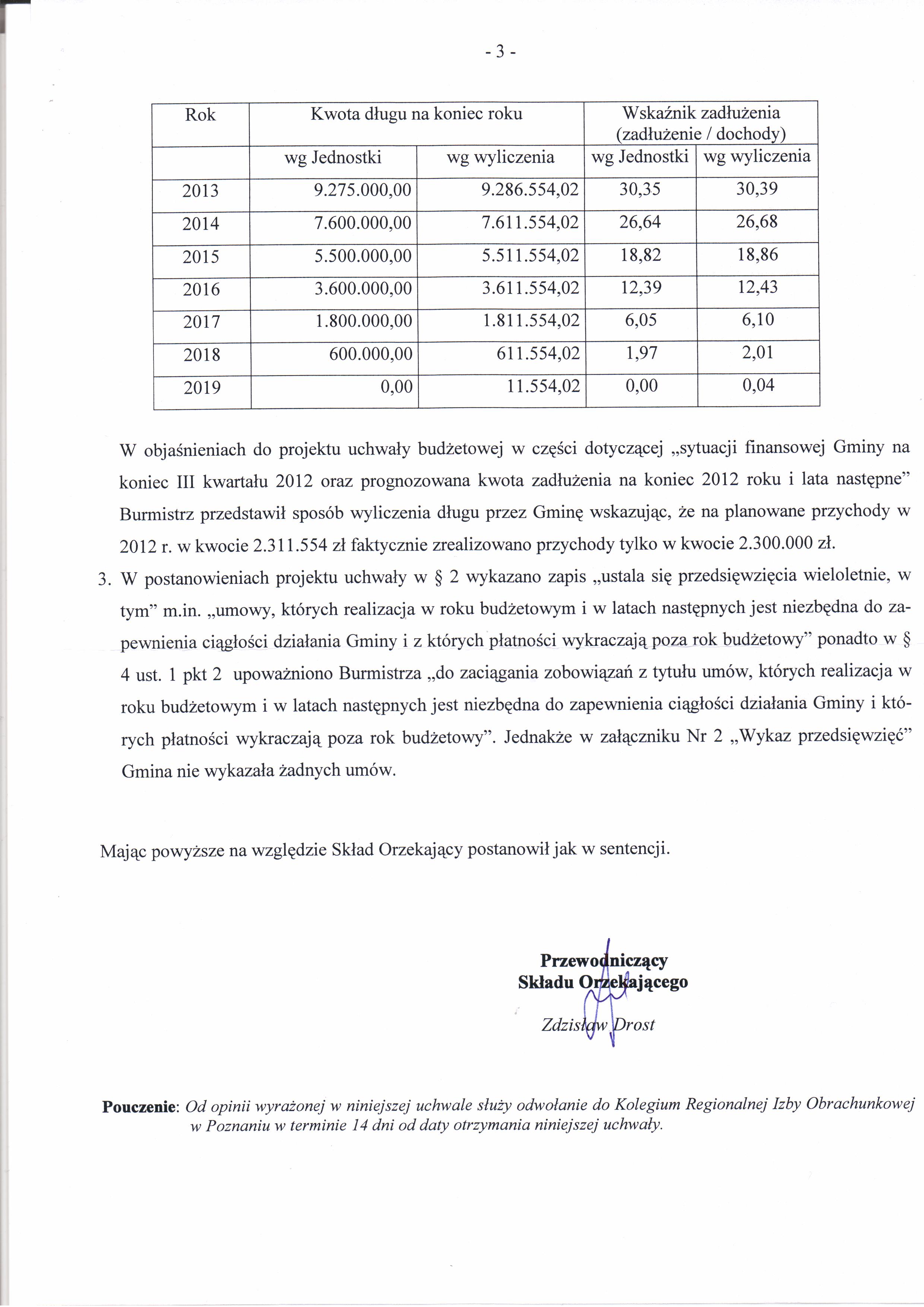 Uchwała Regionalnej Izby Obrachunkowej w sprawie wyrażenia opinii o prawidłowości planowanej kwoty długu Gminy Miejska Górka