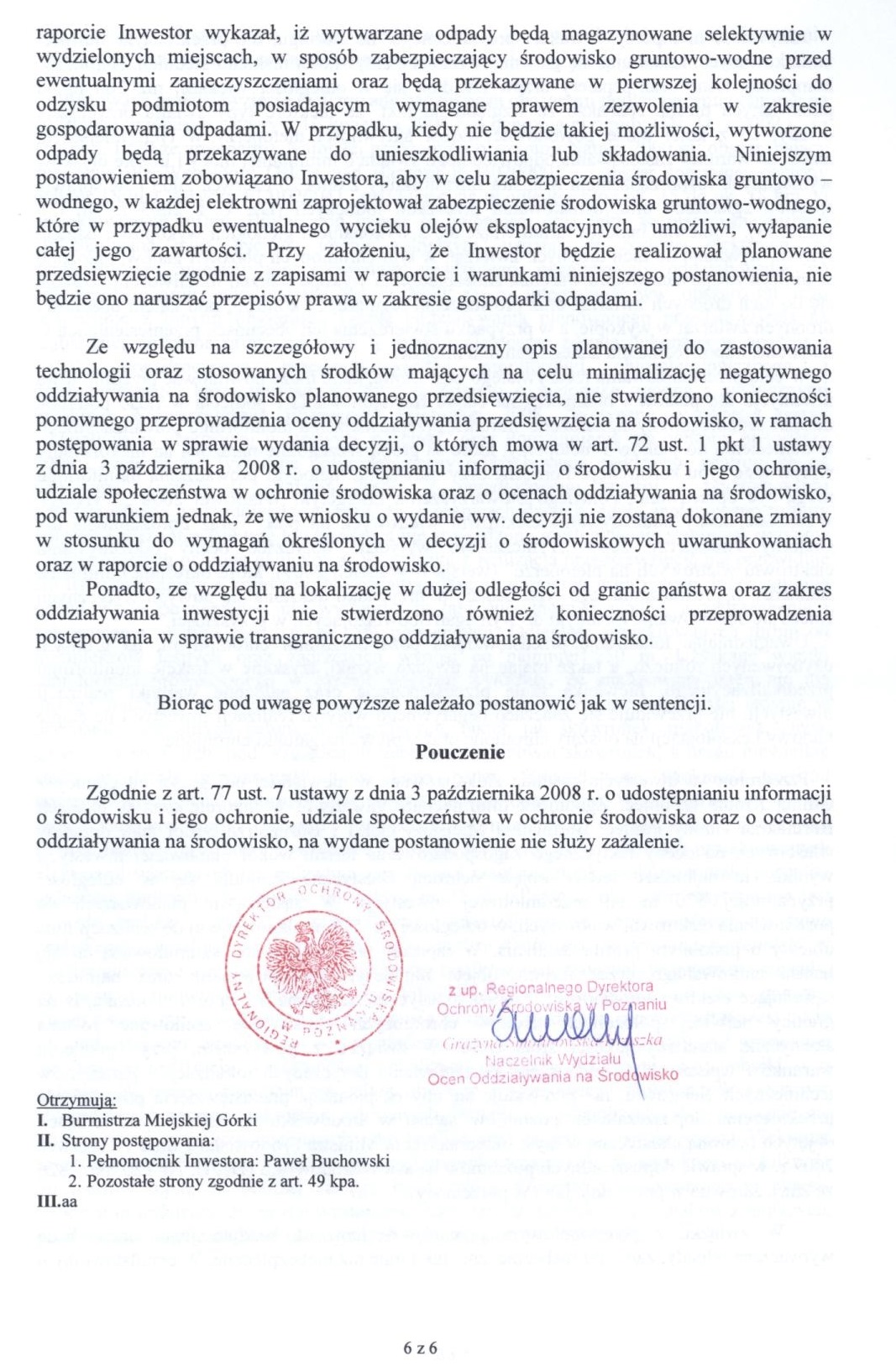 Zgodnie z art. 74 ust. 3 ustawy z dnia 03 października 2008 r. o udostępnianiu informacji o środowisku i jego ochronie, udziale społeczeństwa w ochronie środowiska oraz ocenach oddziaływania na środowisko (Dz. U. z 2008 r. Nr 199, poz. 1227 ze zm.) oraz w związku z art. 49 ustawy z dnia 14 czerwca 1960 r. Kodeks postepowania administracyjnego (Dz. U. z 2013 r. poz. 267 j.t.) niniejszą informacje podaję się do publicznej wiadomości w formie obwieszczenia, z uwagi na to, że liczba stron postępowania przekracza 20. Obwieszczenie niniejsze podlega ogłoszeniu w sposób zwyczajowo przyjęty w miejscu planowanej inwestycji. Ponadto na tablicach ogłoszeń w siedzibie Urzędu Miejskiego w Miejskiej Górce, Poniecu i Krobi oraz na tablicach ogłoszeń sołectw Gmin Miejska Górka (Gostkowo, Roszkowo, Roszkówko), Poniec (Szurkowo), Krobia (Niepart –przysiółek Dębina, Ciołkowo – przysiółek Huby) oraz na stronie www.miejska-gorka.pl.