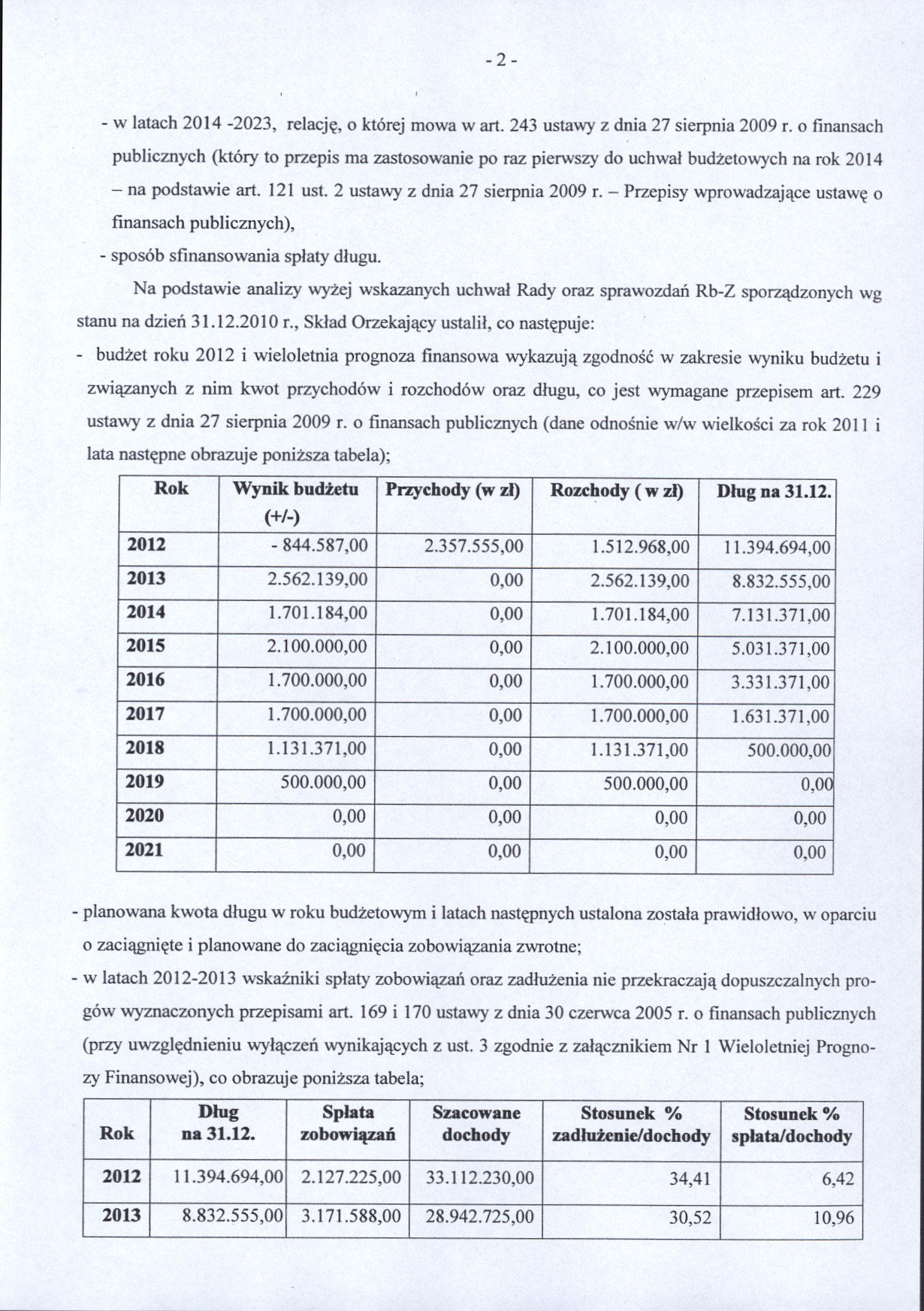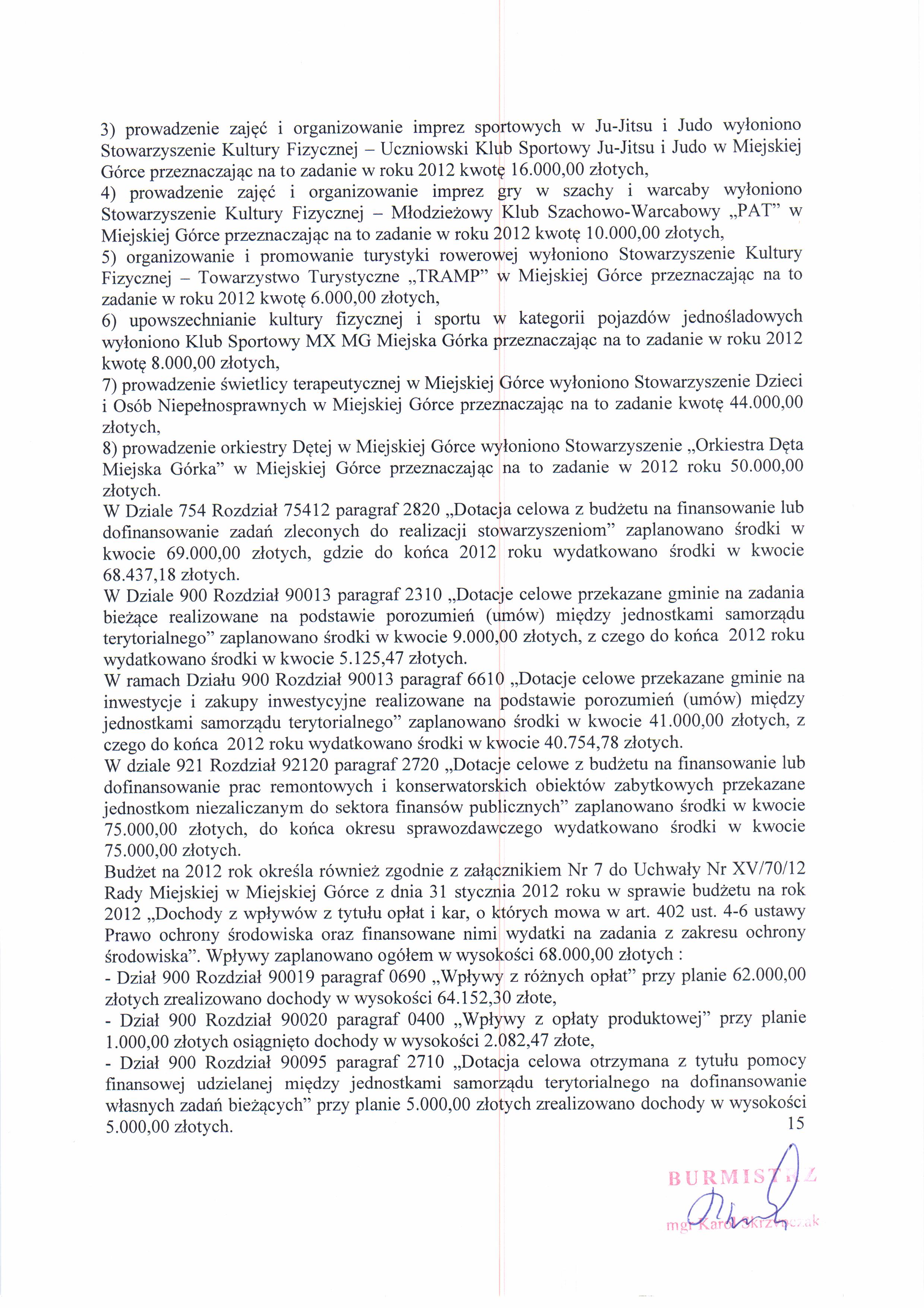 Uchwała Nr XV/70/12 w sprawie budżetu na rok 2012