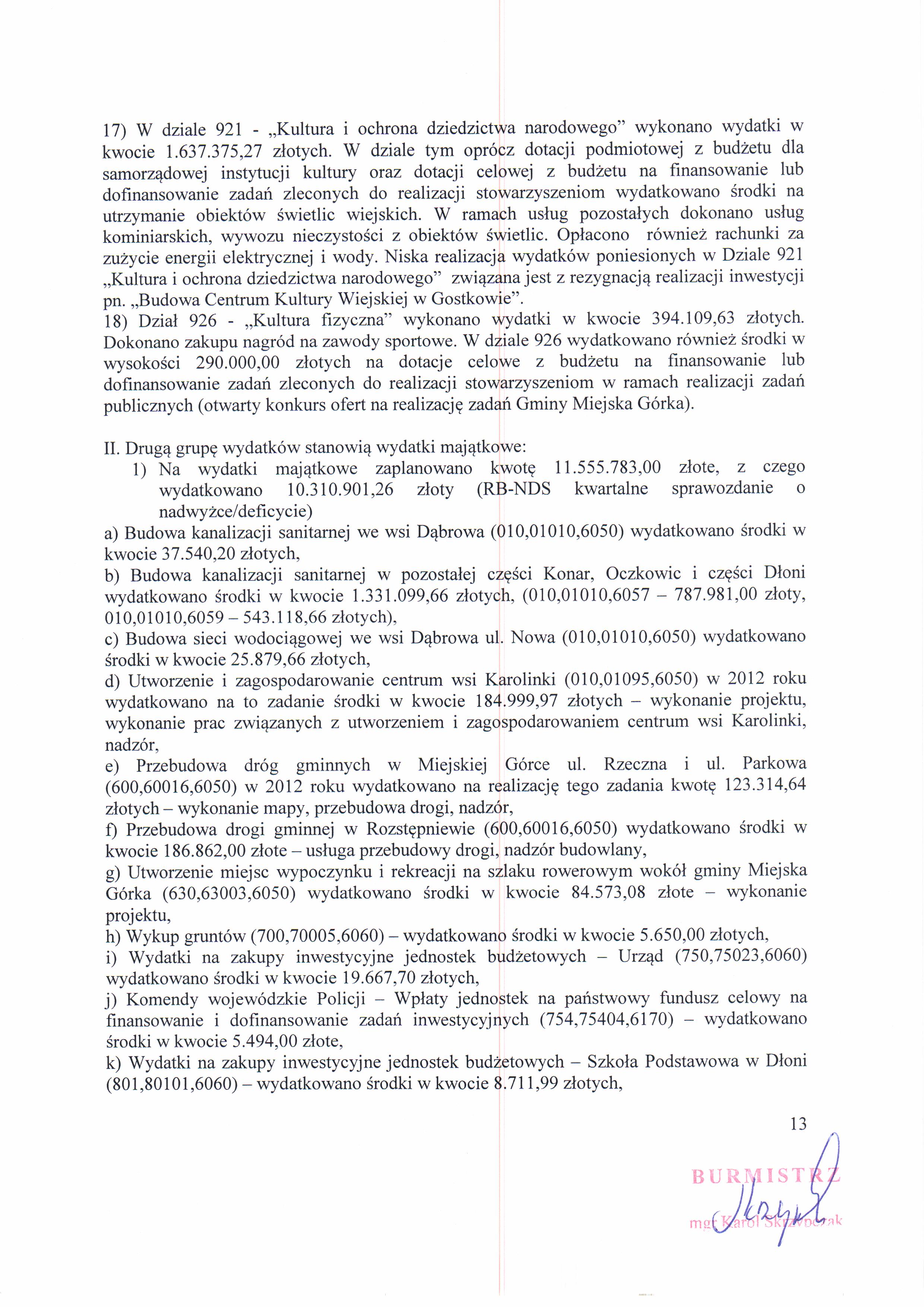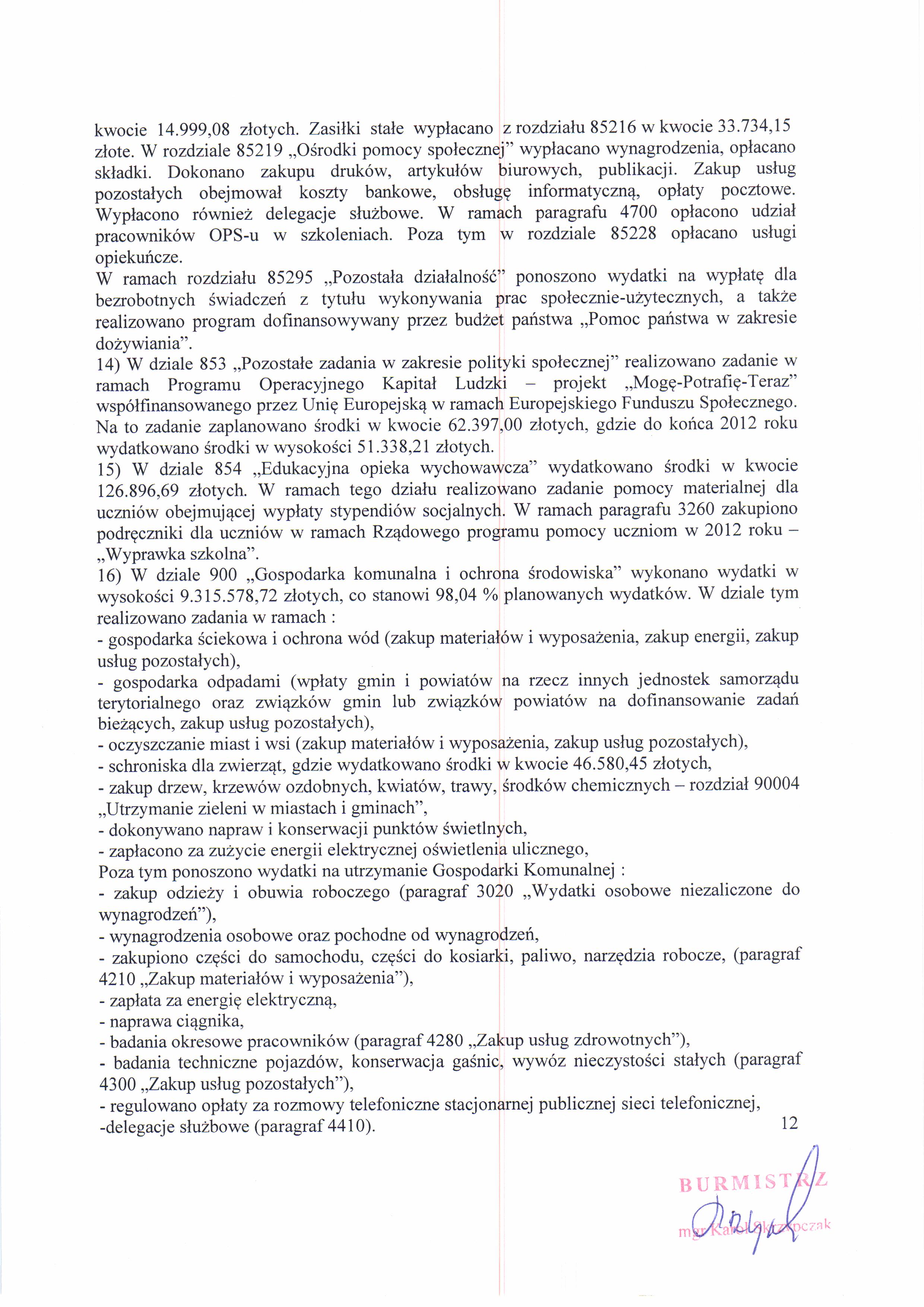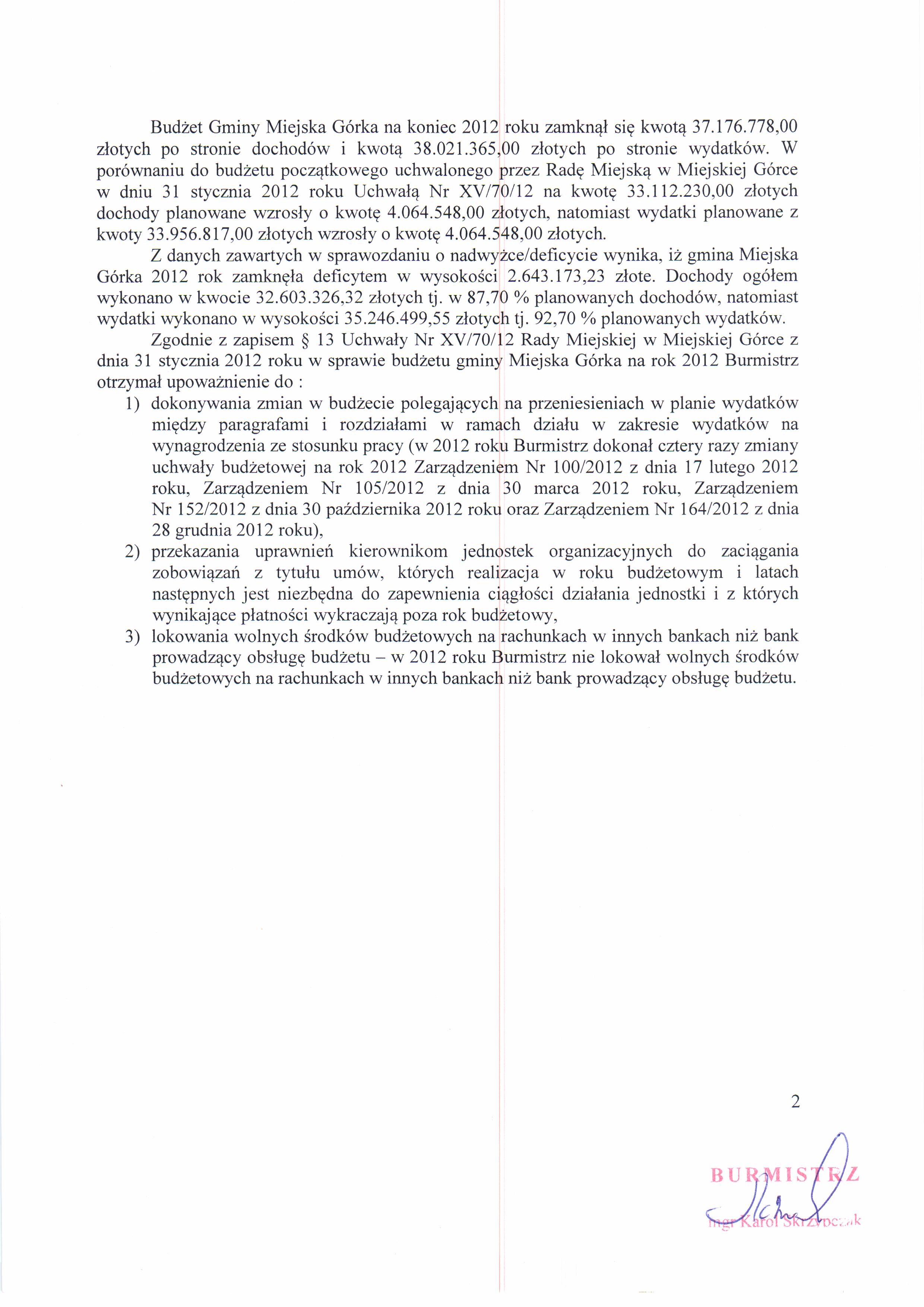 Sprawozdanie roczne z wykonania budżetu gminy Miejska Górka za 2012 rok