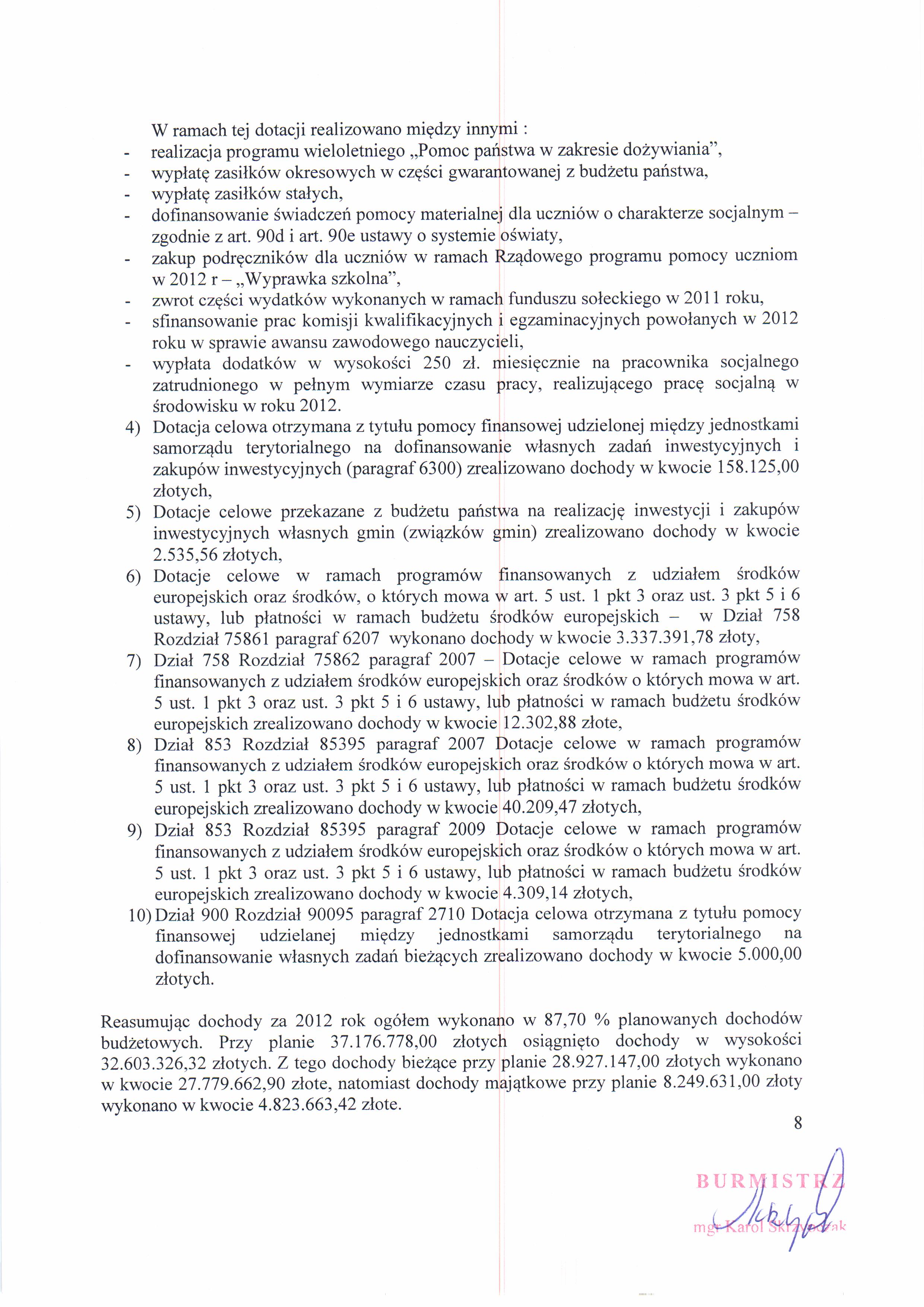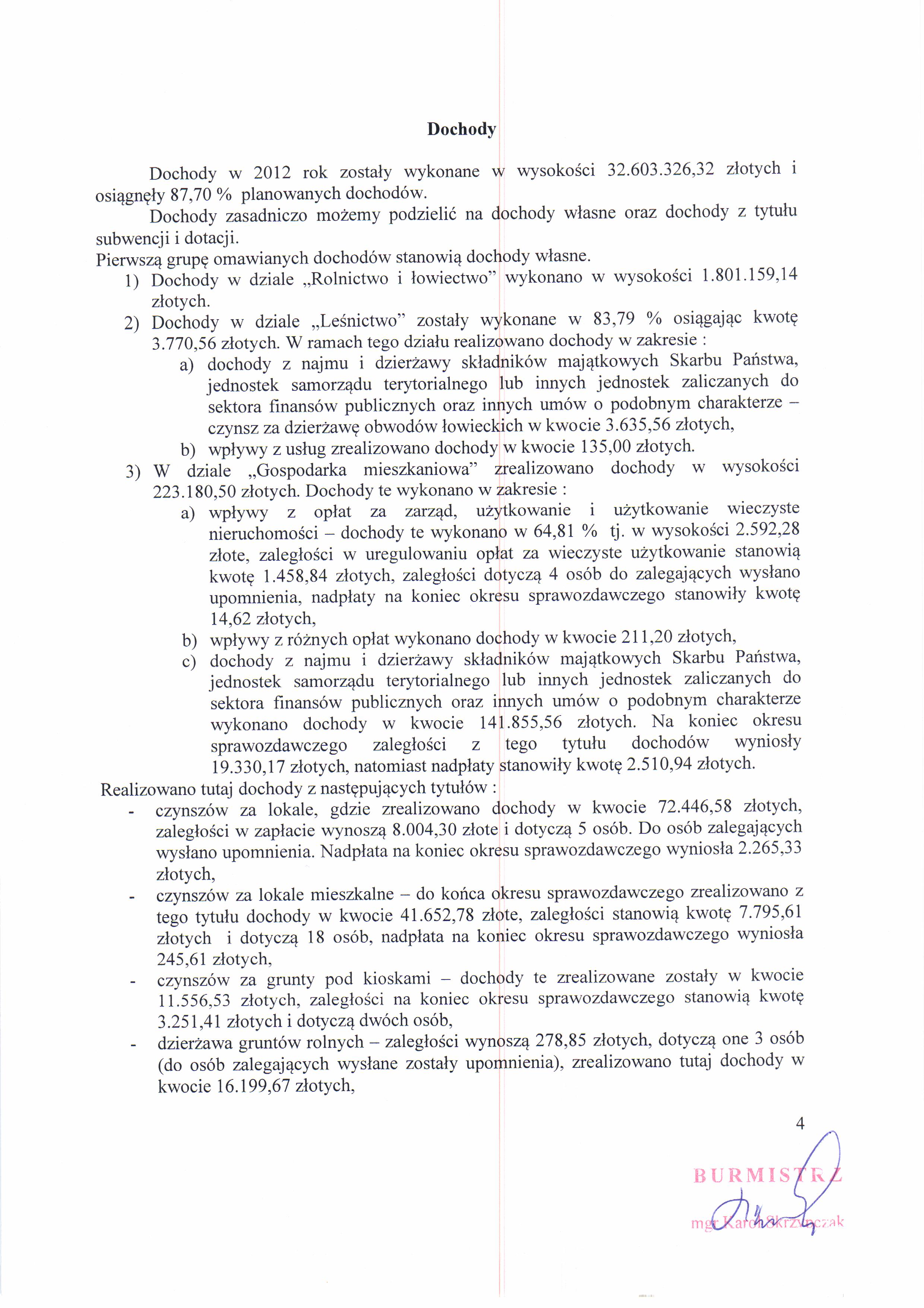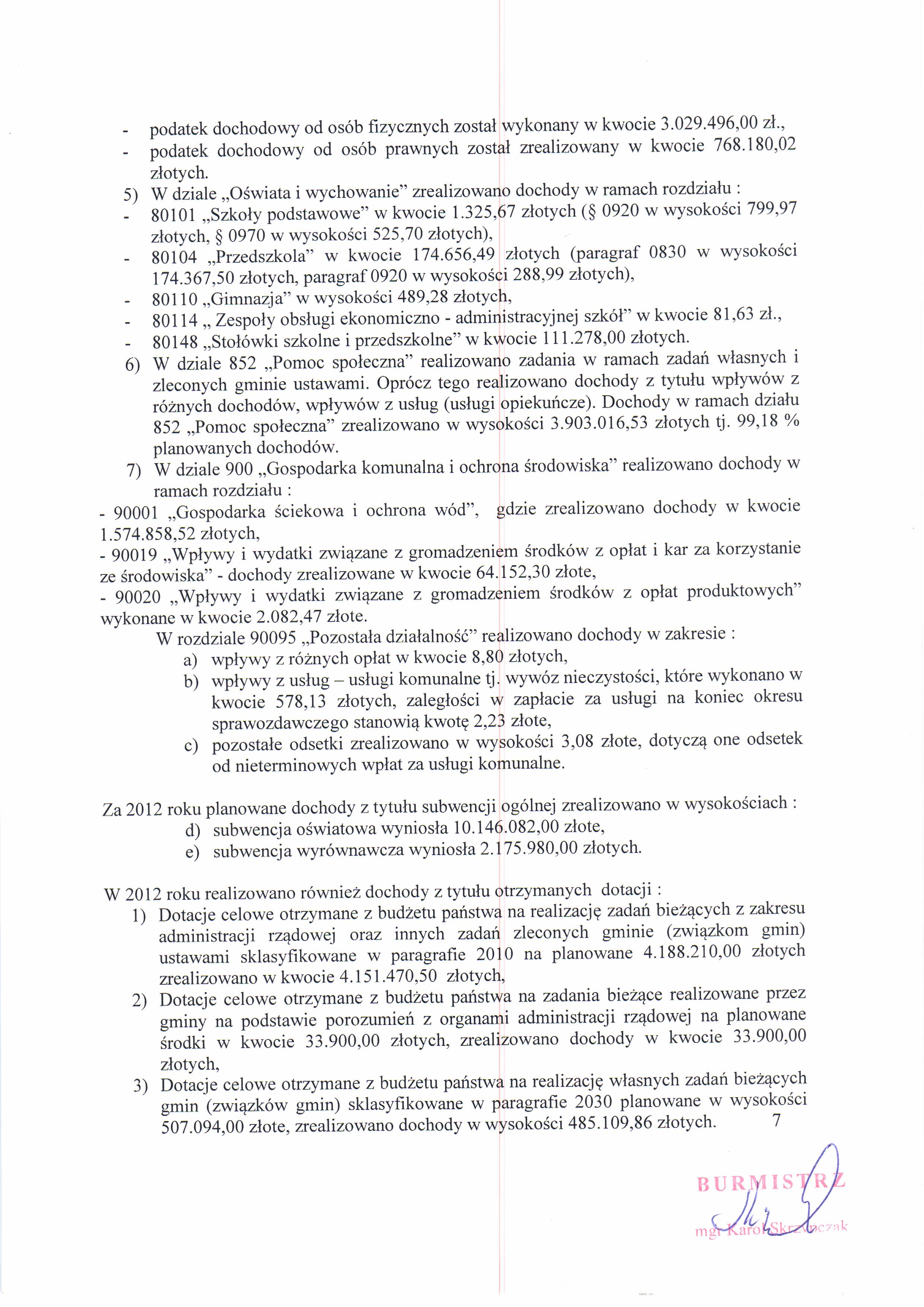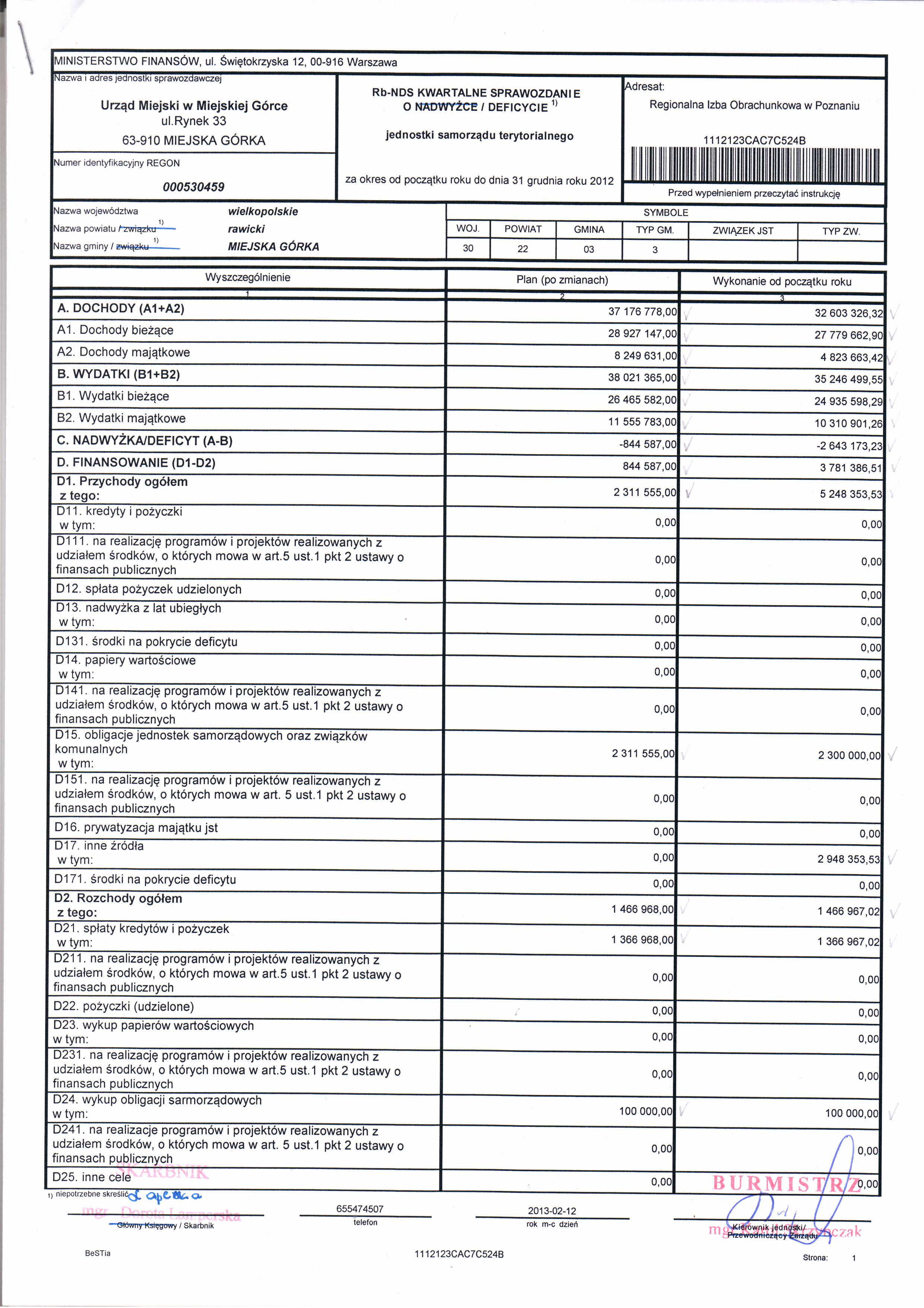 Sprawozdanie roczne z wykonania budżetu gminy Miejska Górka za 2012 rok